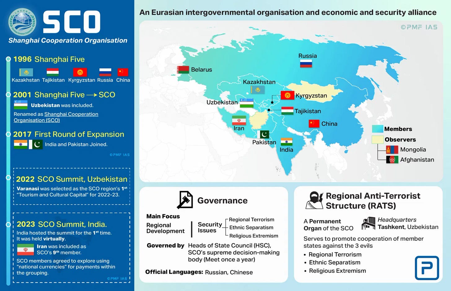 The SCO started in 1996 as the Shanghai Five, aimed at resolving border disputes between China, Russia, and Central Asian neighbors. By 2001, it became the Shanghai Cooperation Organisation, adding Uzbekistan. Since then, it’s grown to: