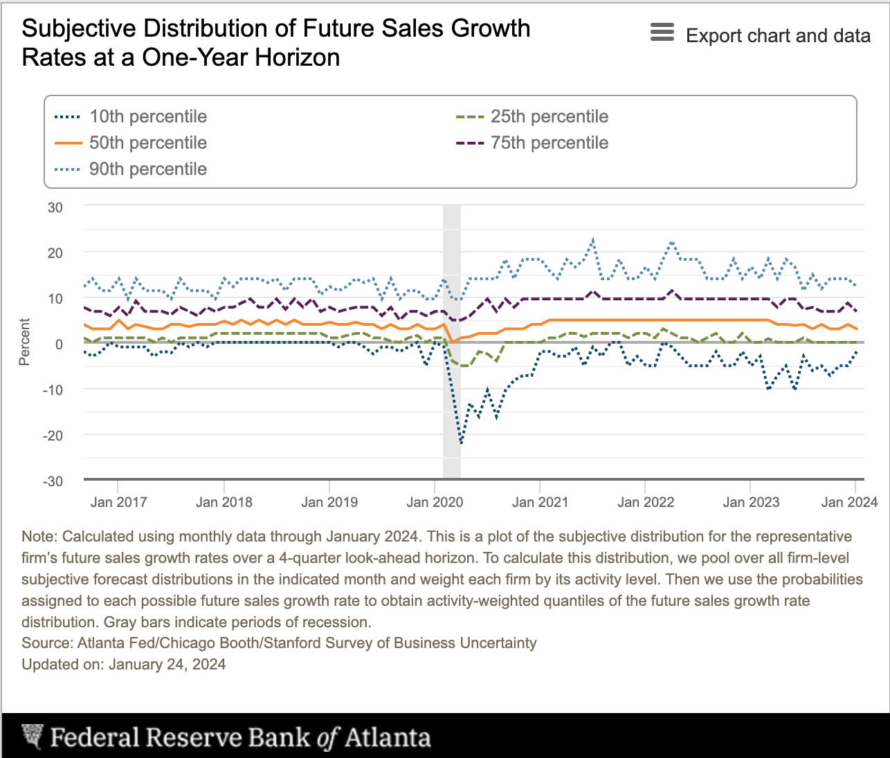 Further, the latest report shows that firms have less confidence in the future sales growth than they did prior to the pandemic: