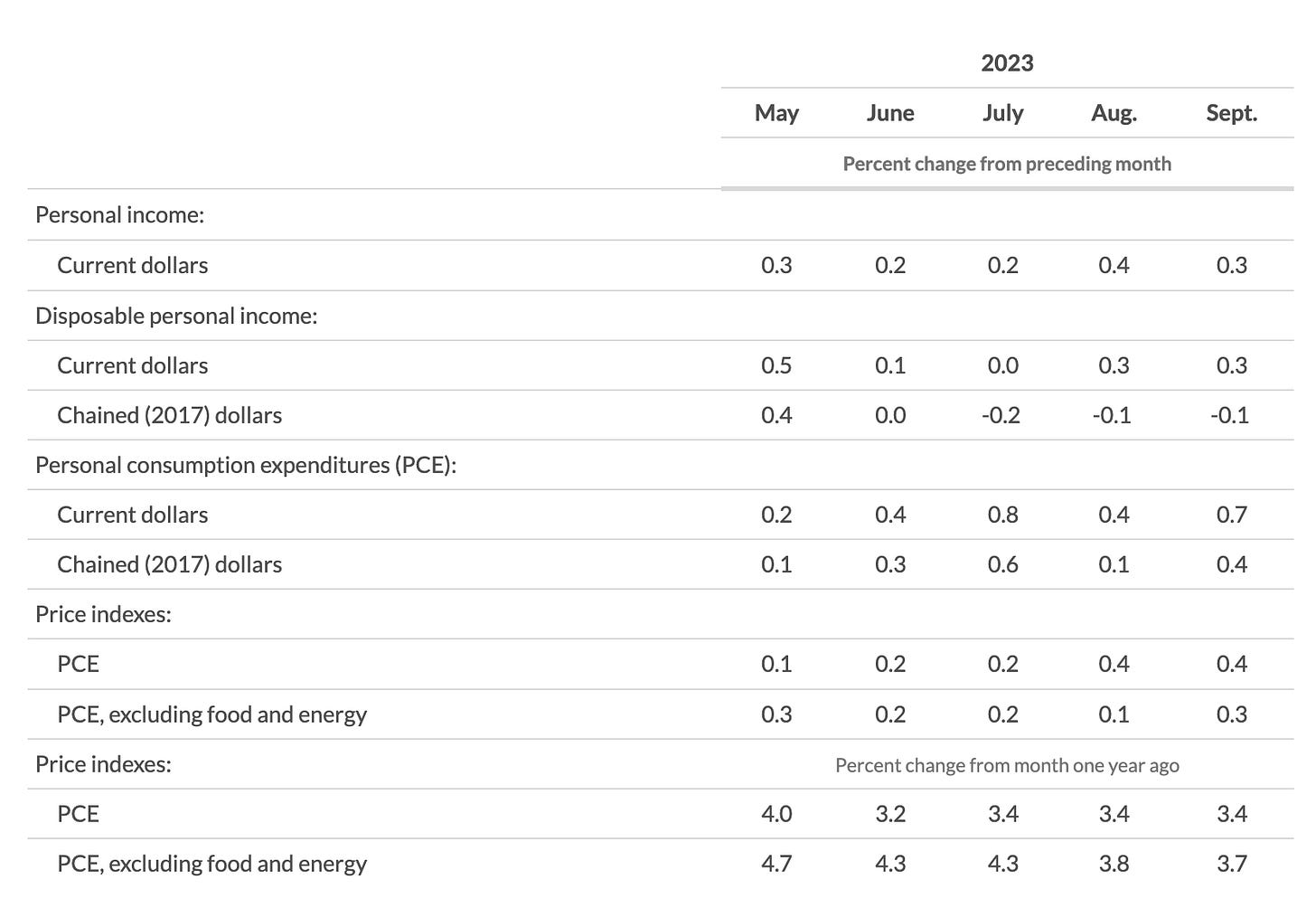 The Fed's "preferred" inflation metric, PCE inflation, falls to 3.4%, in-line with the expectations of 3.4%.