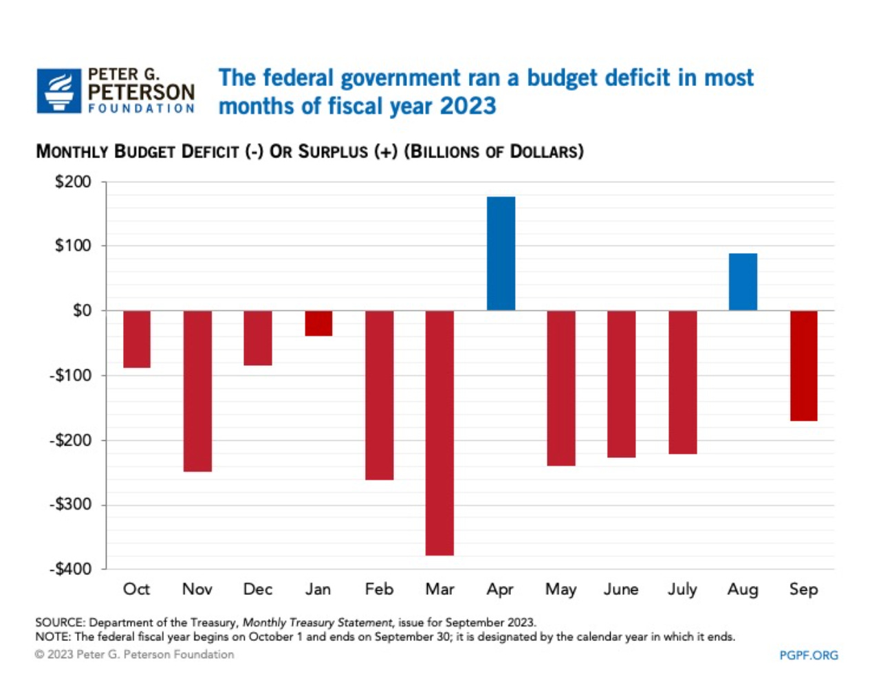 The federal government ran a deficit of $171 billion in September 2023: