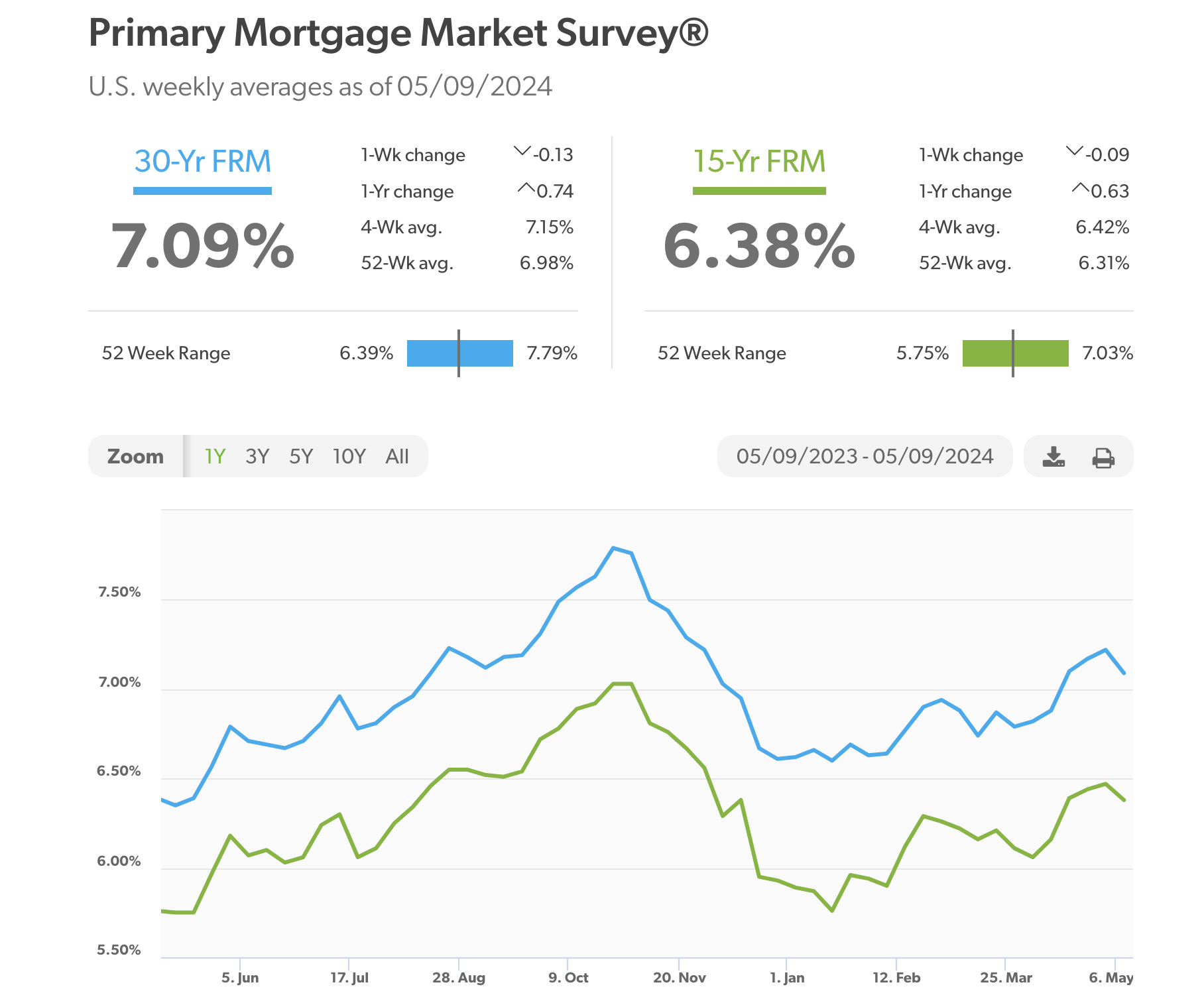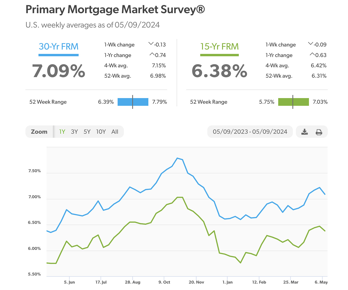 30-year fixed rate averaged 7.09% vs. 7.22% a week prior;