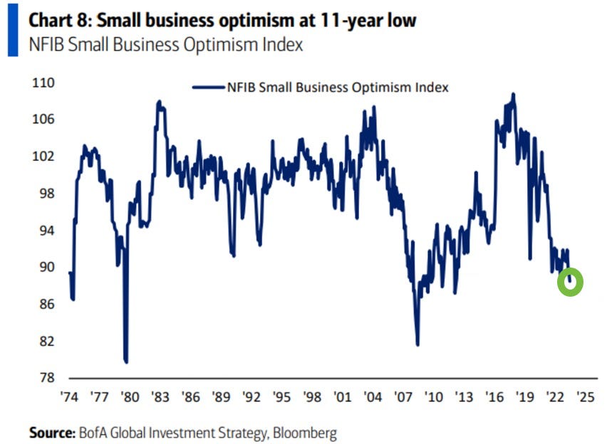 In addition to consumers, small business sentiment declined to an 11-year low. It is now worse than during the 1990s recession: