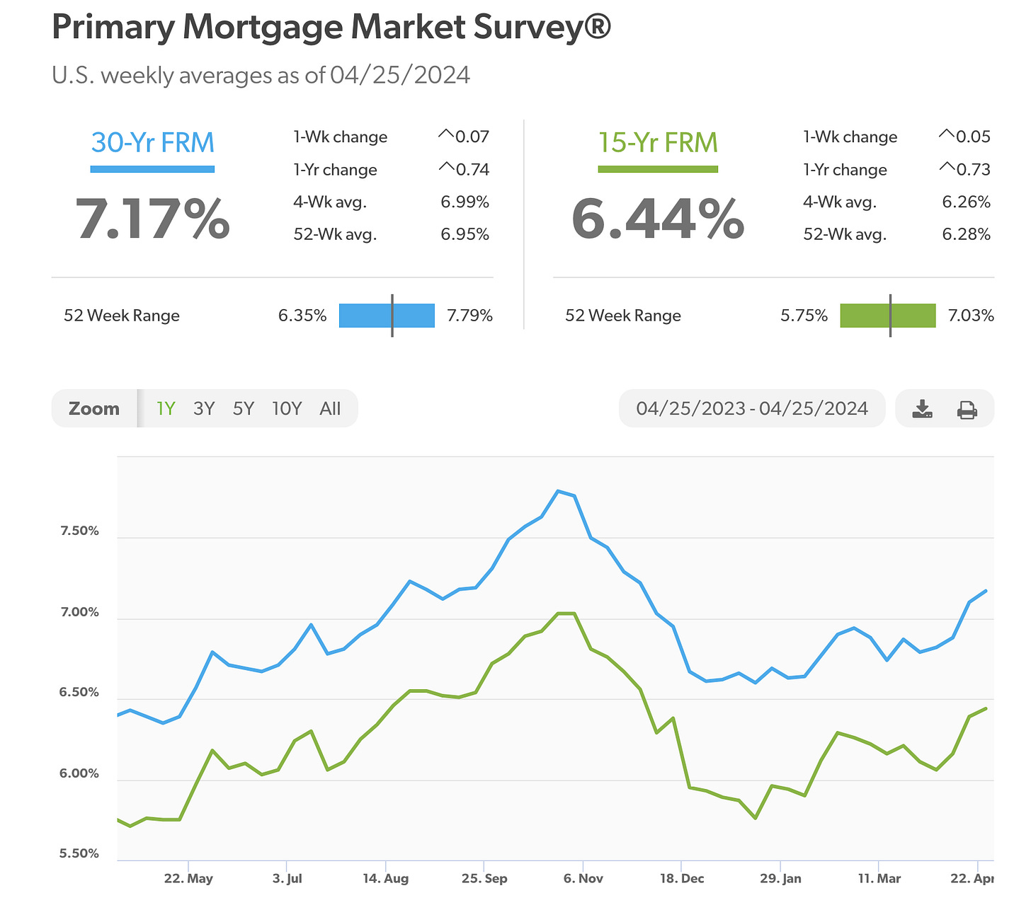 The 30-year rate averaged 7.17 % vs. 7.10% last week.