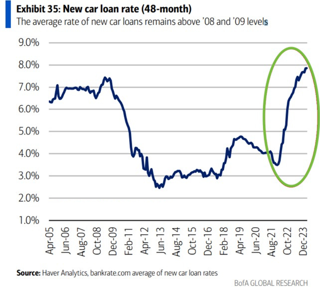 New car loan rates just jumped to their highest level in 23 years, at 8%, and now stand above 2008 highs: