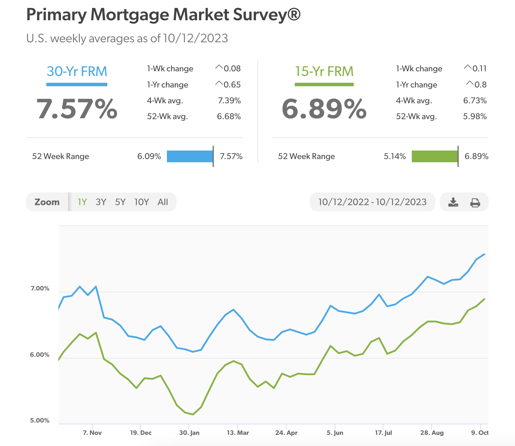 30-year fixed rate mortgage rate increased to 7.57%; while 15-year fixed rate mortgage rose to 6.89%: