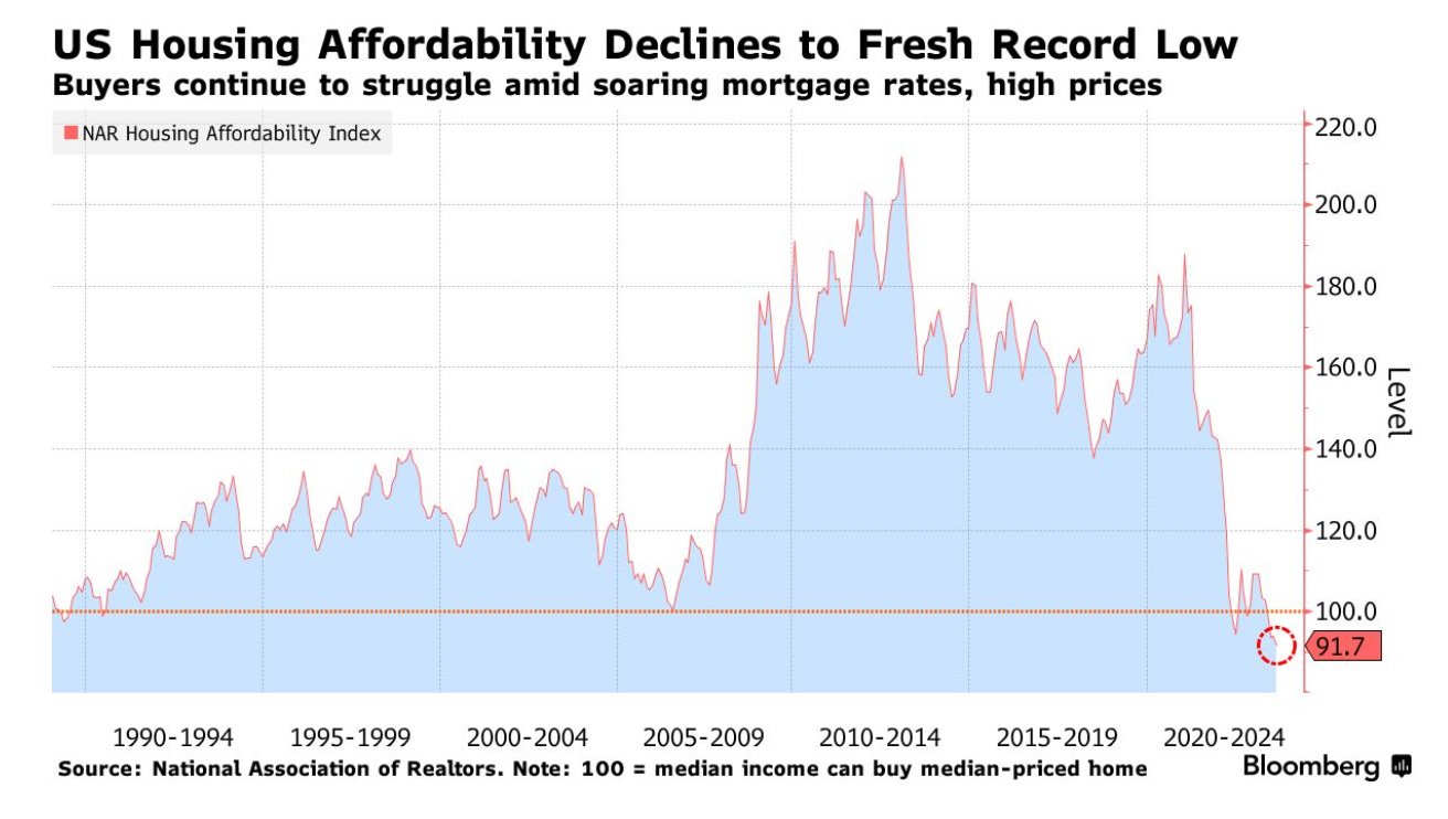 US housing affordability declines to a new record low. The NAR, Mortgage Bankers Association and National Association of Home Builders, wrote a letter this week to Fed Chair Jerome Powell to refrain from raising interest rates: