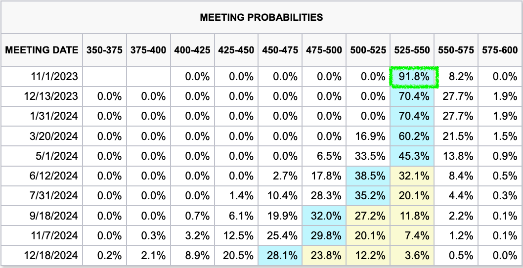 Given the latest CPI data, the probability of the Federal Reserve keeping interest rates unchanged in November stands at 91.8%, up from 79.9% a week ago: