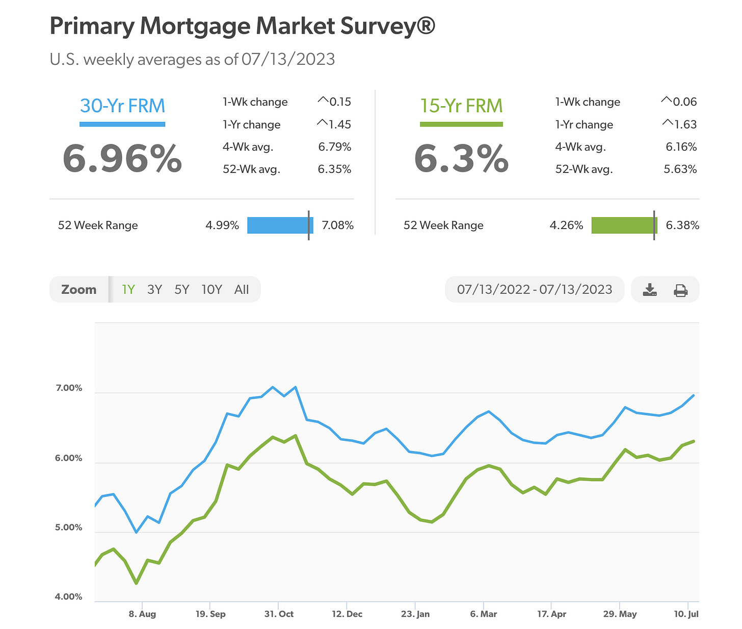 Mortgage rates increased this week, nearing 7%. Housing prices remain high despite the increase in long term borrowing cost:
