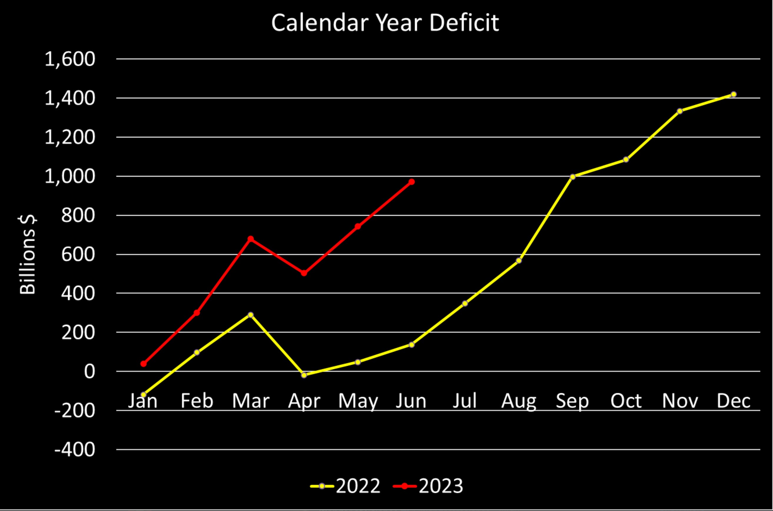 The U.S. government spent $228 billion more in June than it collected in revenue, further hiking its deficit and piling on debt. The deficit is up 607 per cent year over year, a shocking reading: