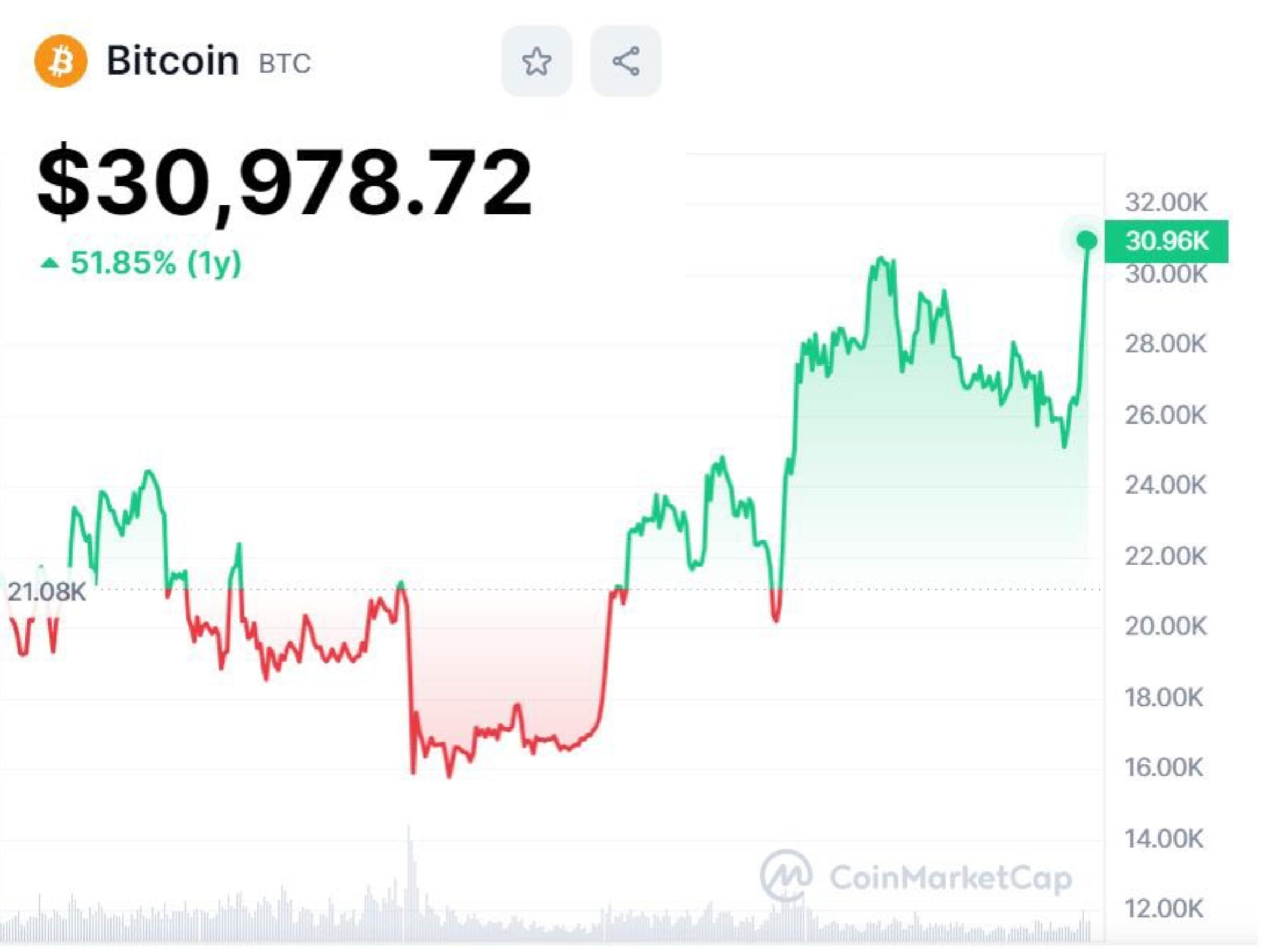 Bitcoin broke through $31k on June 23rd, the highest level since April 2022: