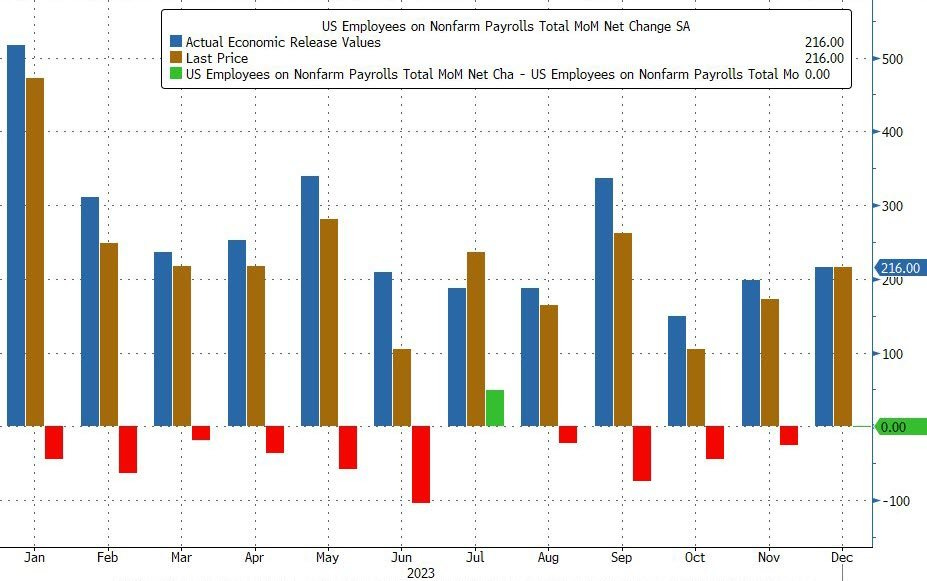 As you can notice in the chart below, the November 2023 jobs number was revised from 199,000 to 173,000 vs. 180,000 forecasted.
